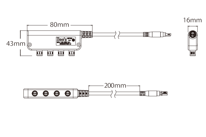 配置(Configuration):兩線(xiàn)4位排插,輸入為0.2米電源線(xiàn),帶Bees公插頭(過(guò)線(xiàn)開(kāi)孔尺寸:10mm)。