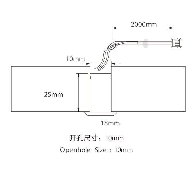 配置(Configuration):嵌入式觸摸開(kāi)關(guān)(可調光),出線(xiàn)為2米24AWG黑色軟排,帶三線(xiàn)Mini公插頭(過(guò)線(xiàn)開(kāi)孔尺寸:8mm)。